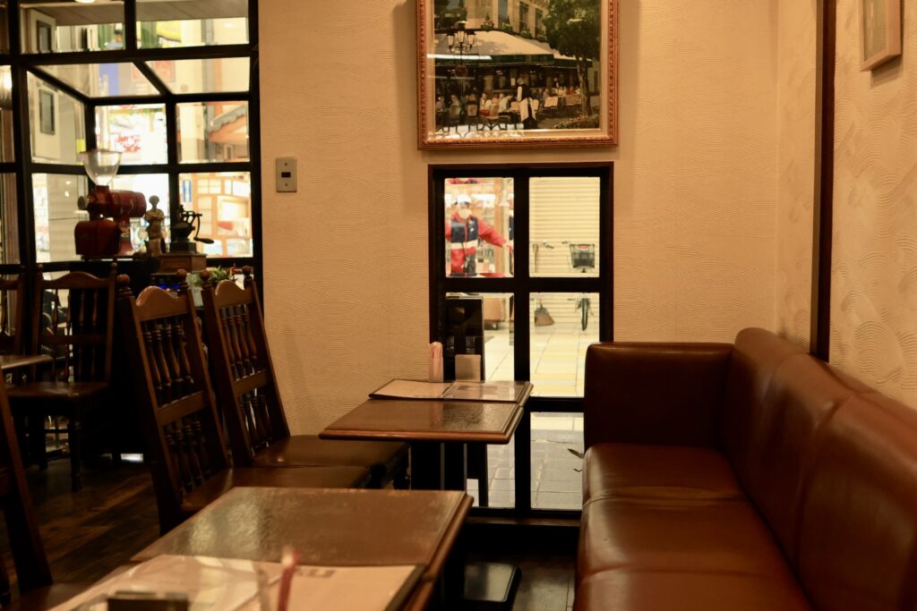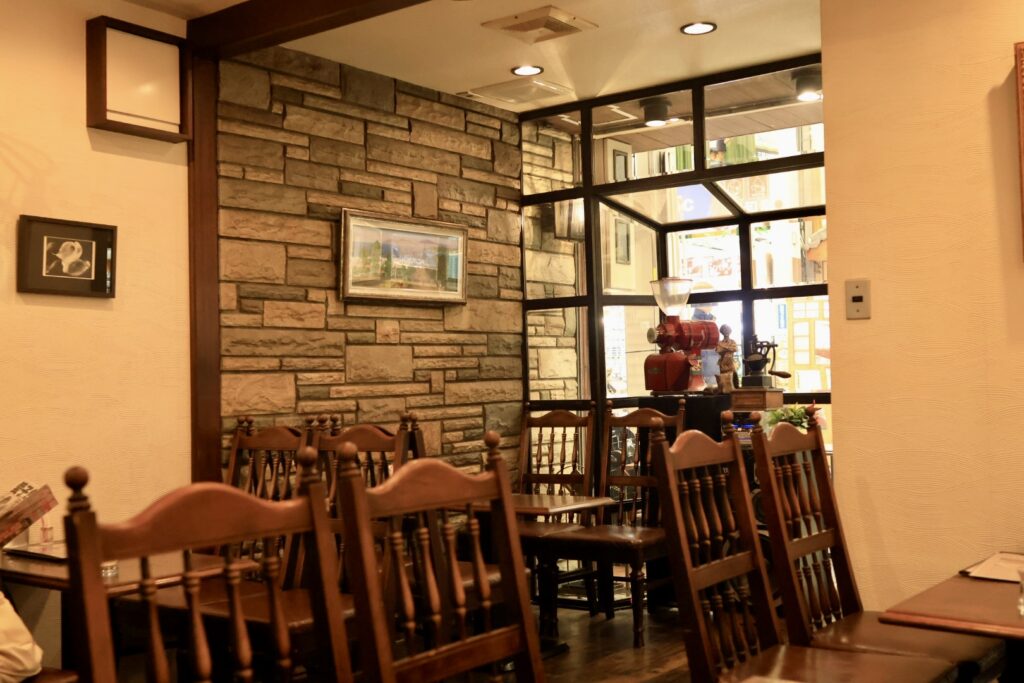 お店としては創業60年以上と書いてありますが、2025年10月にスタッフ・メニューをリニューアルされたようです。この辺りの喫茶店では珍しく店内禁煙となっています。店内はカウンター席無し、2人席× 、4人席×6となっています。