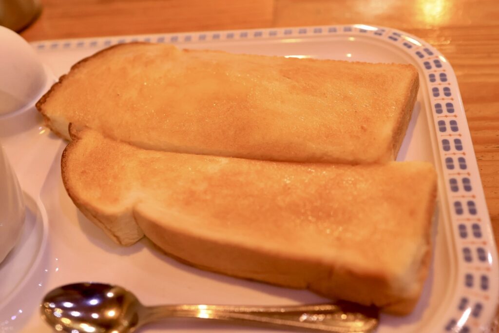 トーストは山食で6枚切りくらいの厚みで2分割されています。耳は全て付いています。バターがたっぷりで食感は軟らかめ。ゆで卵はとても剥きやすかったです。