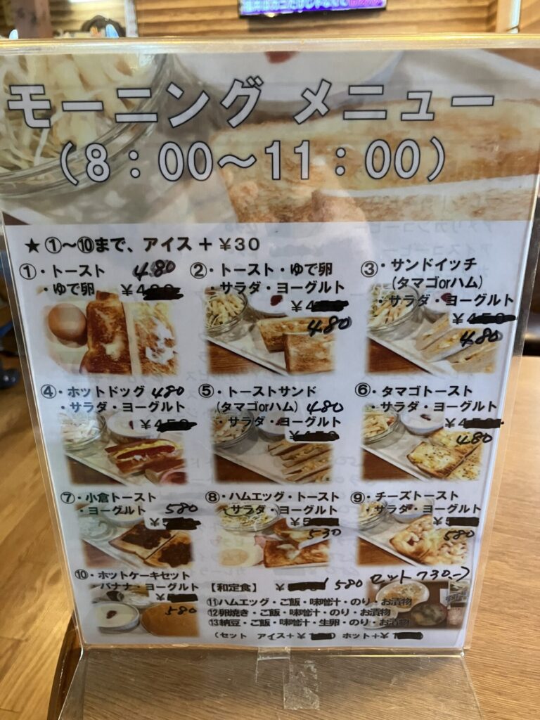こちらのモーニングは何と言っても種類の多さでしょう。洋食10種類、和定食3種類の合計13種類と圧倒される品揃えです。