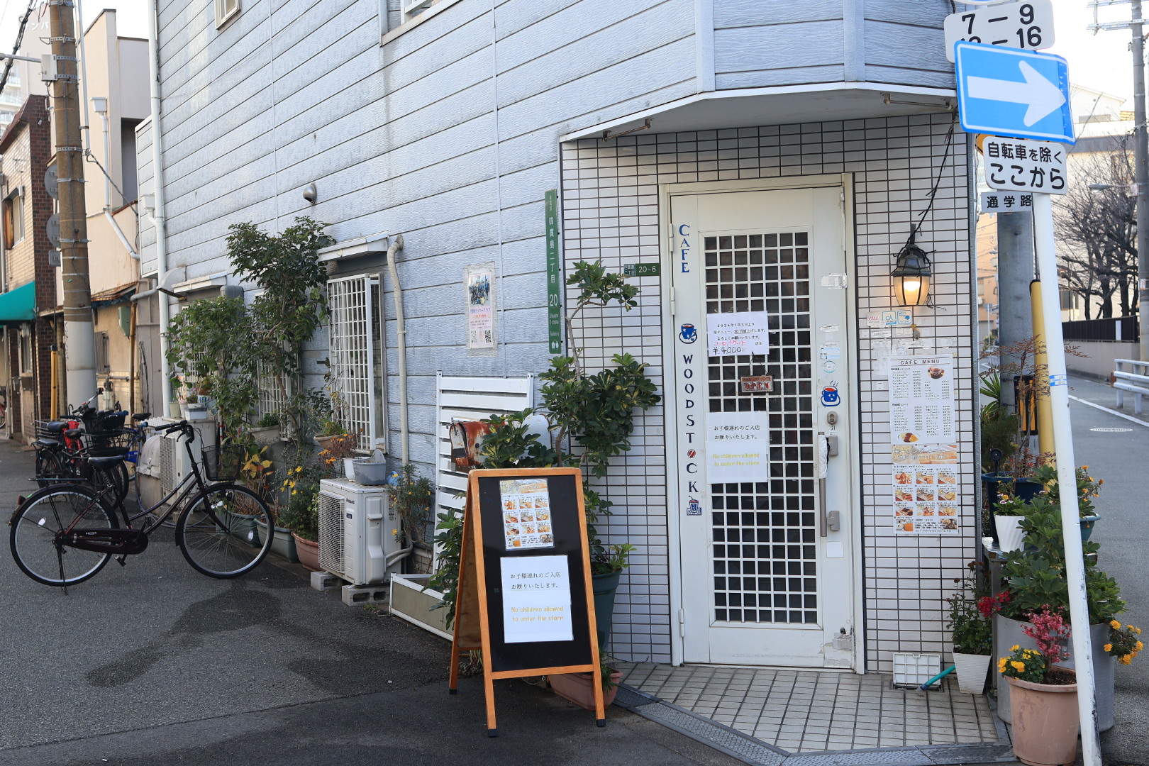 今回訪問した「カフェ ウッドストック」さんは阪神千鳥橋駅から西へ400mほど。四貫島小学校の北側にあります。角地にある喫茶店です。