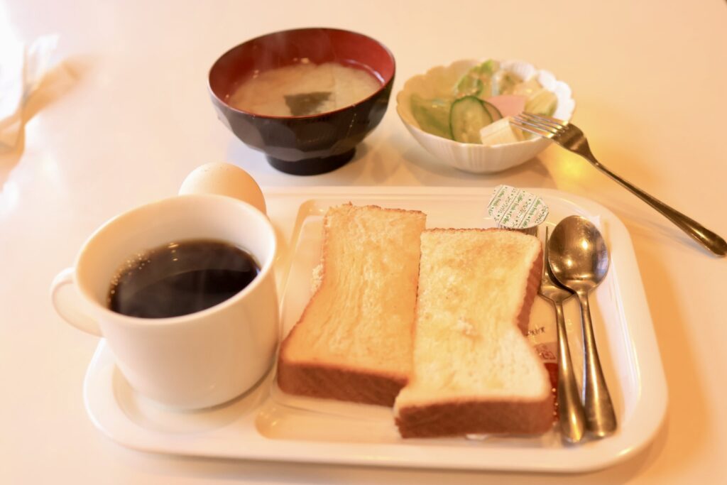 A①:トースト、玉子、サラダ、味噌汁:400円