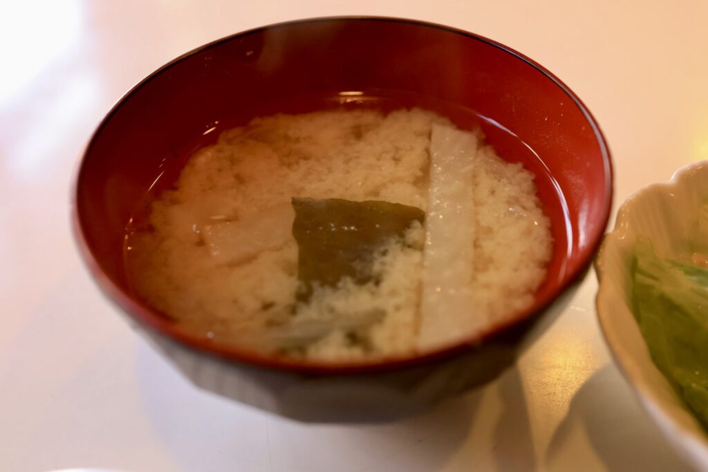 味噌汁は大根、玉ねぎ、わかめが入っています。洋食モーニングに味噌汁・・・あまりない組み合わせでもありますね。