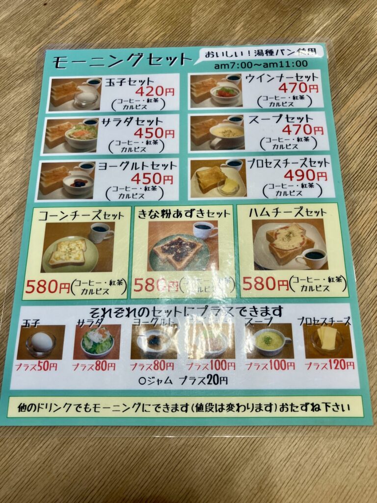 こちらのモーニングは9種類です