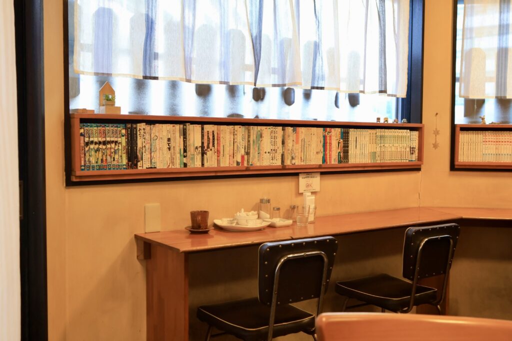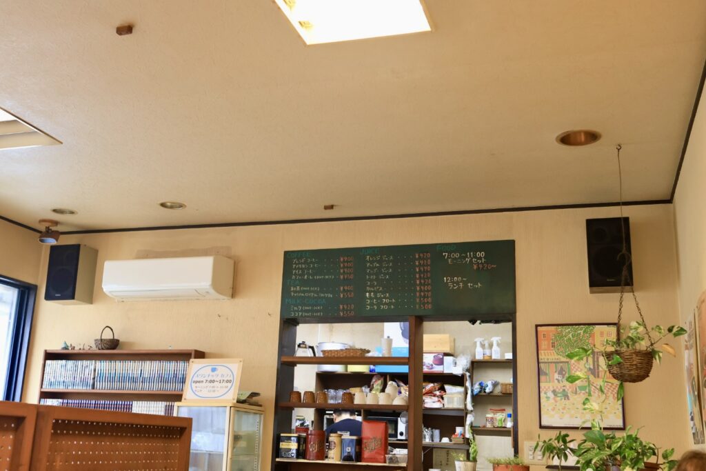 店内はカウンター席なし、窓際の長テーブル4席、2人席×3、4人席×1となっています。レストハウス・ルーさんは禁煙なのに対して、スワンチックカフェさんは喫煙可能とあって、タバコを吸いたい方はこちらに来られるようです。