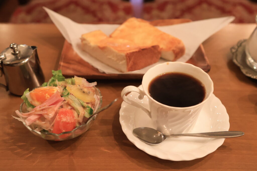 こちらのモーニングは1種類ですが、トーストの他にゆで卵もしくはサラダが付くとのこと。
