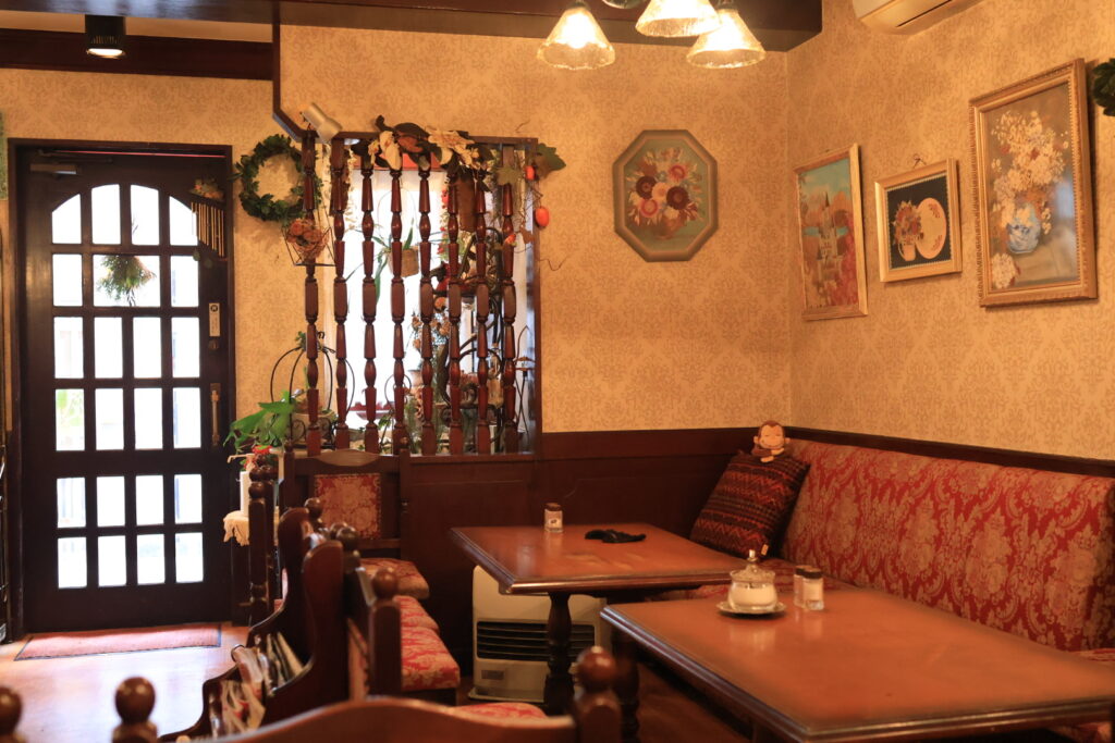 レンガ調の外観は昔の喫茶店を思わせます。静かなBGMがかかり、シャンデリアやランプが沢山ある店内は昔ながらの喫茶店の雰囲気を味わえます。店内にはピアノが置いてあるのでライブも出来そうですね、訪問時は常連さんがおしゃべりを楽しんでおられました。