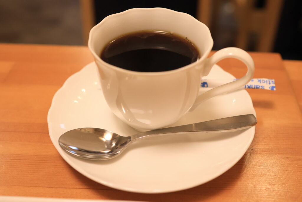 コーヒーは良い香り、口に含むとコクと酸味を感じた後に苦みが追い付いてくる味わい、コーヒーも良い味ですね。