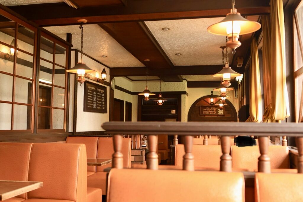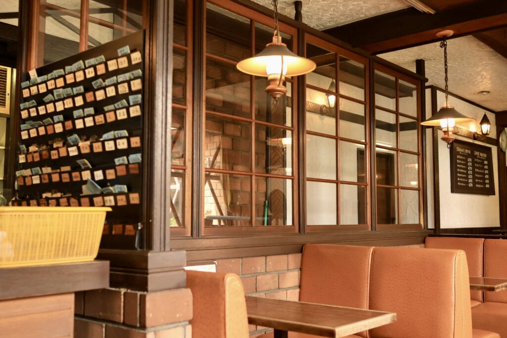ランプで照らされるレトロな雰囲気の店内は4人席が沢山あって広々としています。BGMにジャズが流れていて心地よい空間です。こちらのモーニングは1種類です。