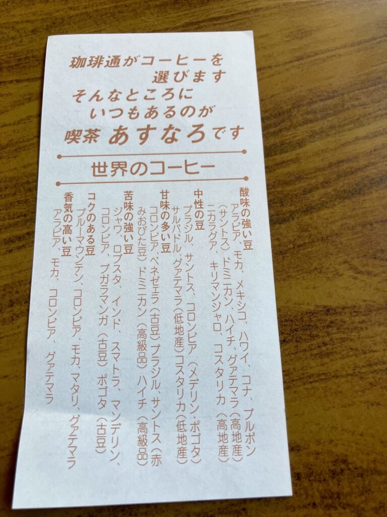 レシート裏にはコーヒー豆についての情報が載っています。こちらのブレンドはどの豆を使っているのか気になりますね。