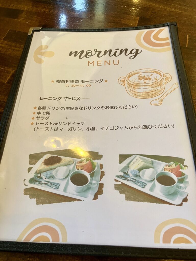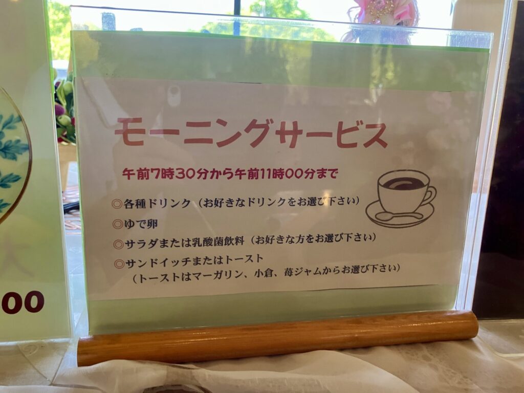 モーニングは7:30~11:00の提供となっています。メニュー表を見ると追加料金を払うことで茶碗蒸しを追加出来るようです。私が訪問したのは12時半ごろ、既にモーニングタイムは終わっていました。