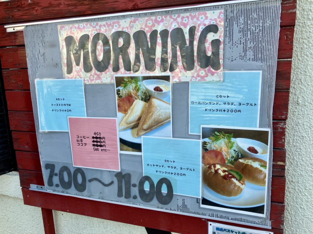 モーニングは3種類で、モーニング代はドリンク代+αとなっています。
