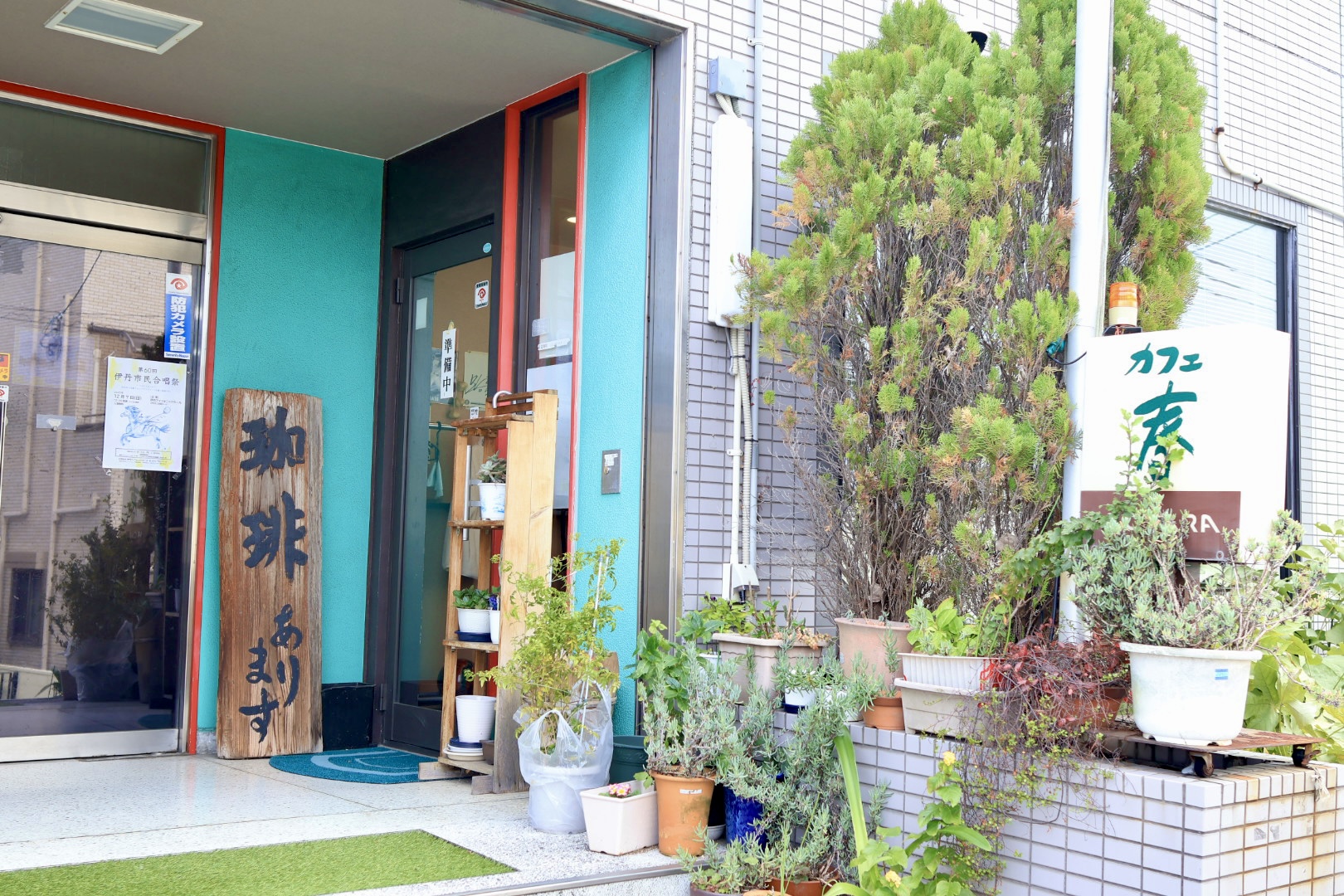 今回訪問した「カフェ 春」さんは工務店の建物の1階に入っています。某地図アプリでコーヒー、喫茶店などのキーワードで検索してもヒットしないお店です。伊丹市北部の喫茶店を調査中に通りすがりに見つけたお店ですが、果たして・・・