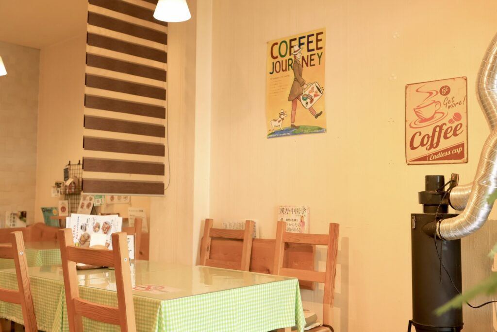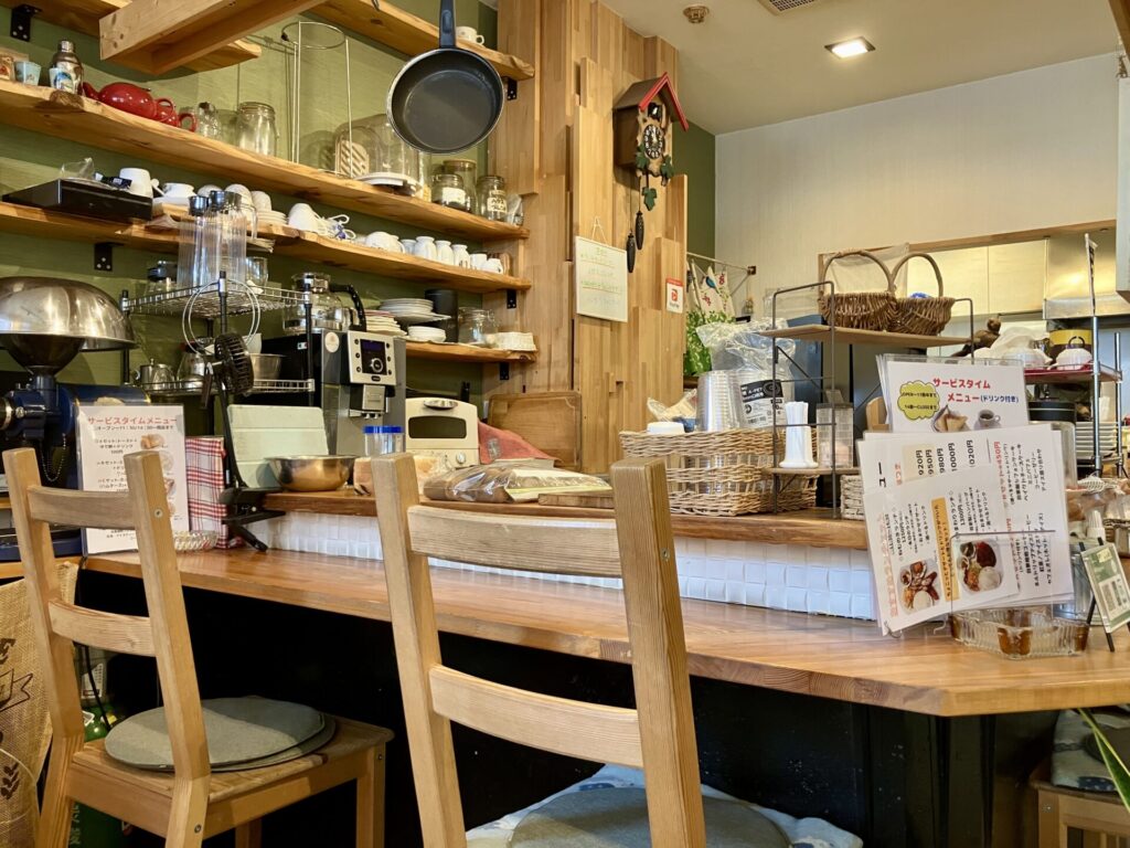 今回訪問した「カフェ ねむのき」さんは伊丹市北部、みやそう病院の南側にあります。中に入ると意外と新しい内装の店内でした。店内はカウンター5席、窓際の長テーブルに4席、4人席×2となっています。ランチタイム(11:30~14:00)は禁煙タイム、その他時間帯も妊婦さんや子供がいる場合、混雑時などは禁煙となるようです。