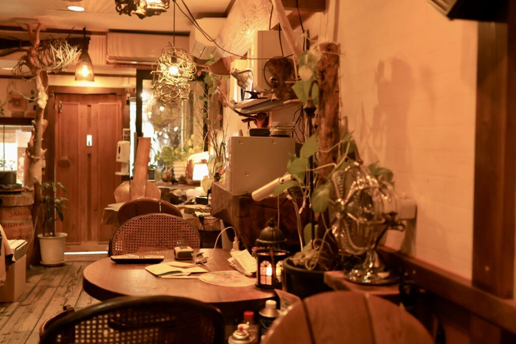店内はカウンター3席、2人席×3、4人席×1、5~9人用テーブル×1となっています。オーディオからジャズが流れる店内はマスター自身が手掛けられたという木の内装で明るい雰囲気です。