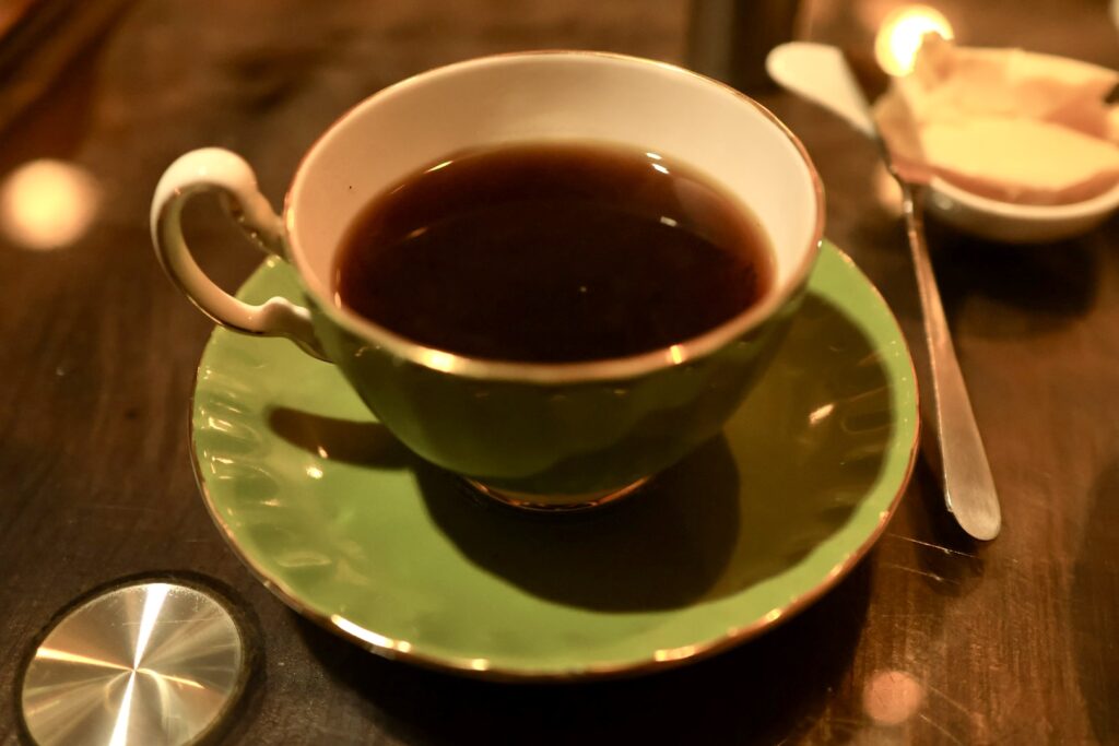 コーヒーの水色は薄めで良い香りです。香り、コク、酸味、苦みなどの風味が怒涛の勢いとなって口に流れ込んで来ます!!これは・・・初めての味わいです。コーヒーはコーヒーサーバーごと提供され、余った分は卓上のコーヒーウォーマーで温かくキープされます。この日はマスターの好意でいつもよりも多めに入れてもらえたようです。